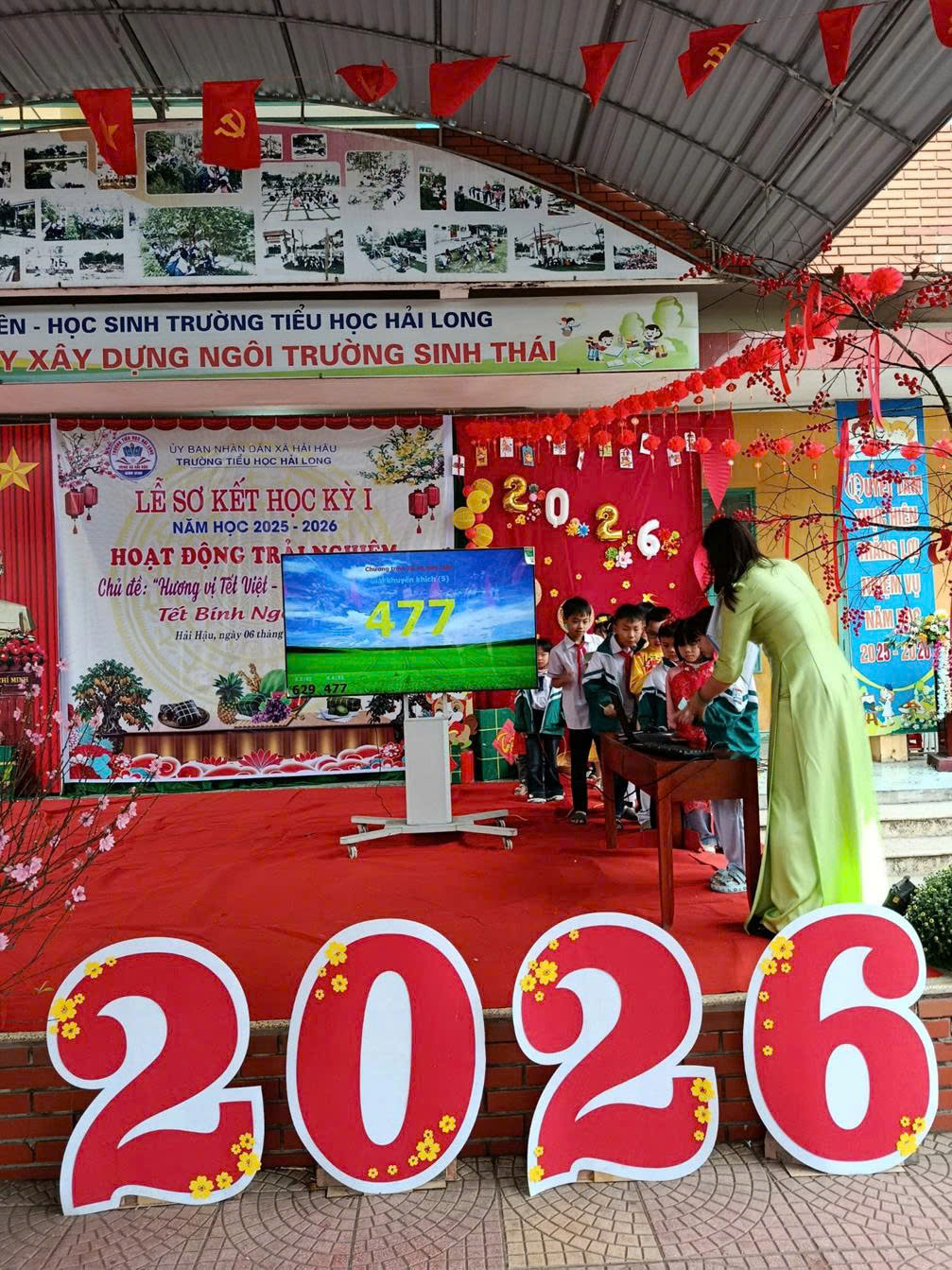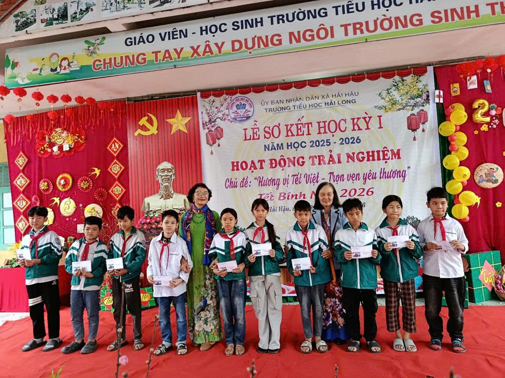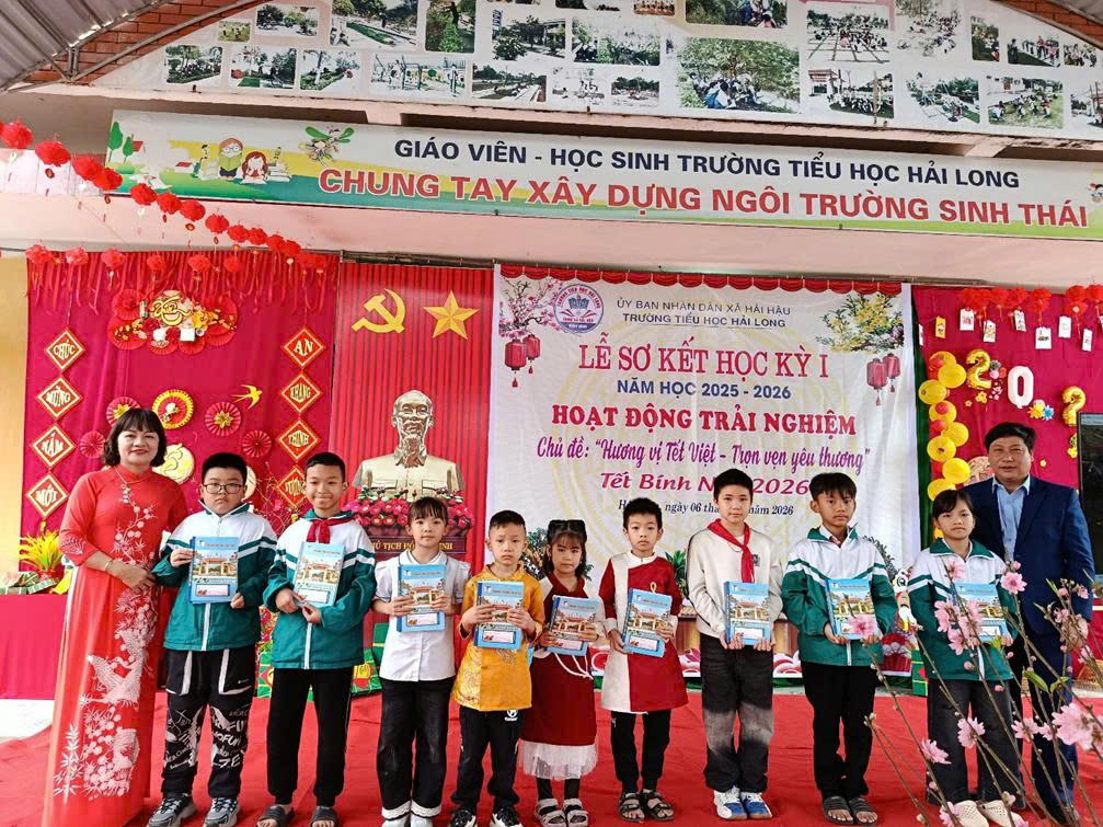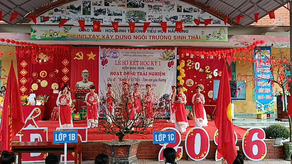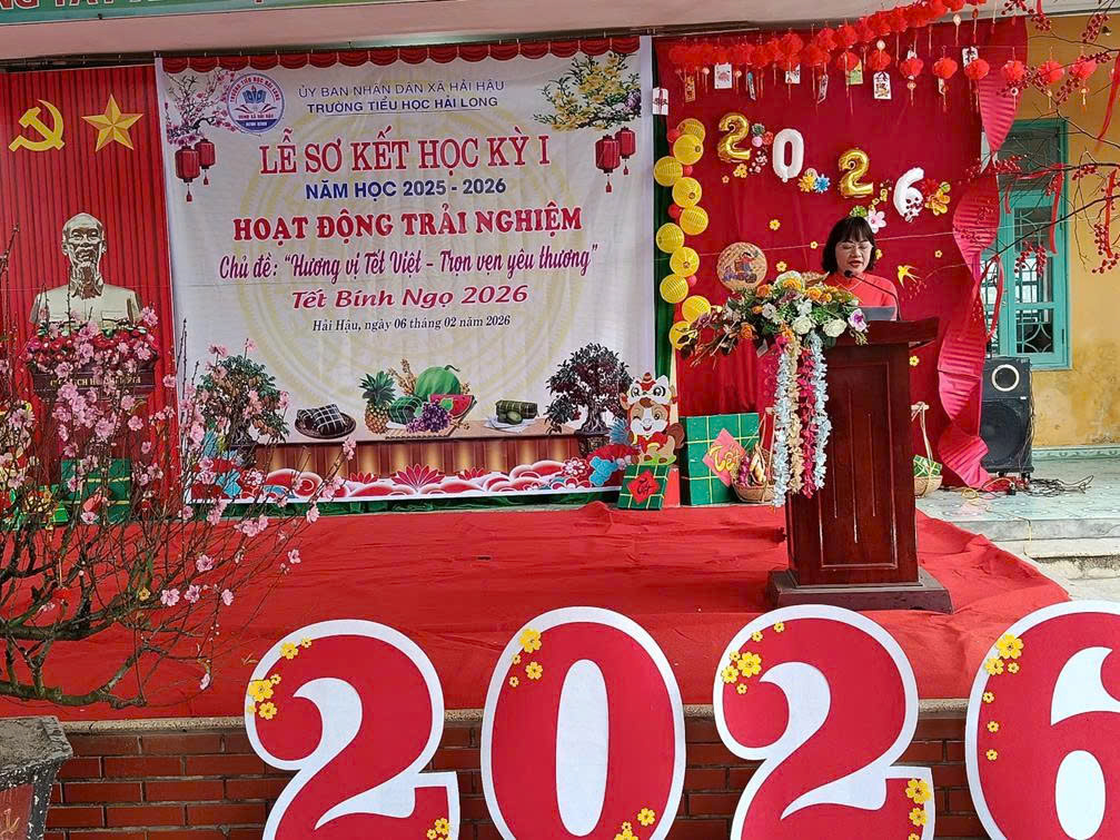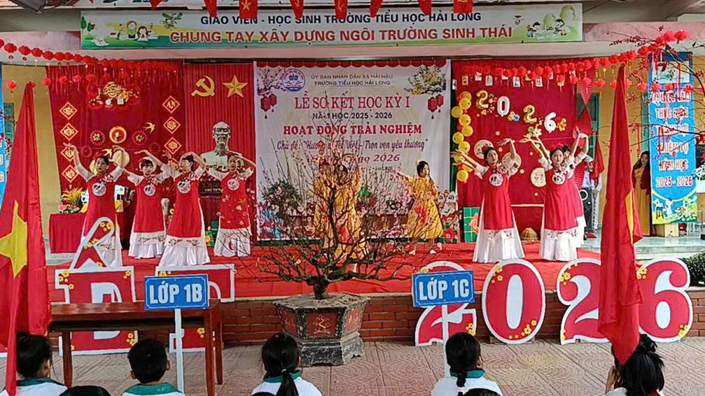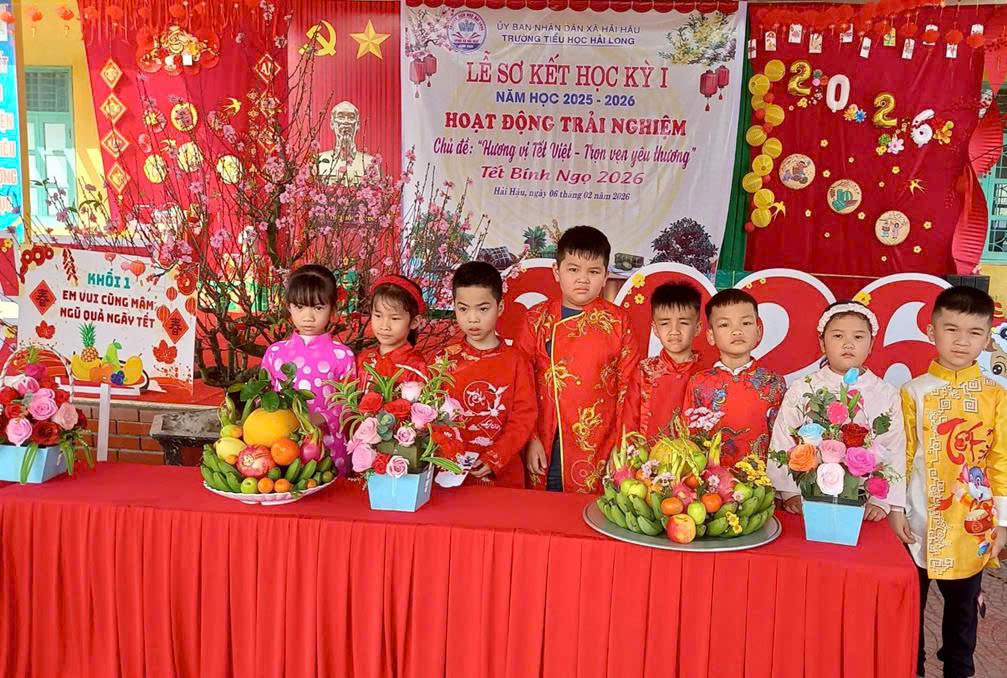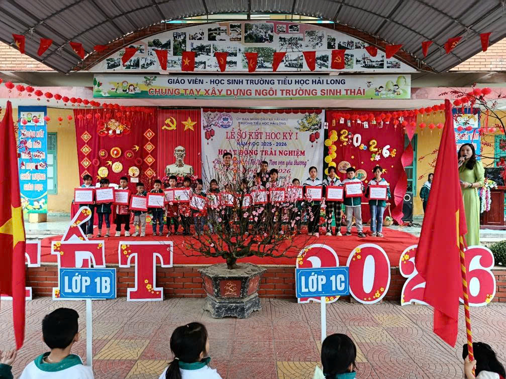 Trong không khí rộn ràng những ngày cuối năm, Ngày 06/02/2026 (tức ngày 19 tháng Chạp năm Ất Tỵ), trường Tiểu học Hải Long đã long trọng tổ chức Lễ sơ kết học kì I năm học 2025 – 2026 và tổ chức hoạt động trải nghiệm với chủ đề “Hương vị Tết Việt – Trọn vẹn yêu thương”. Chương trình diễn ra trong không khí trang trọng – ấm áp – đầy sắc xuân, để lại nhiều cảm xúc tốt đẹp trong lòng thầy cô, học sinh và cha mẹ học sinh.