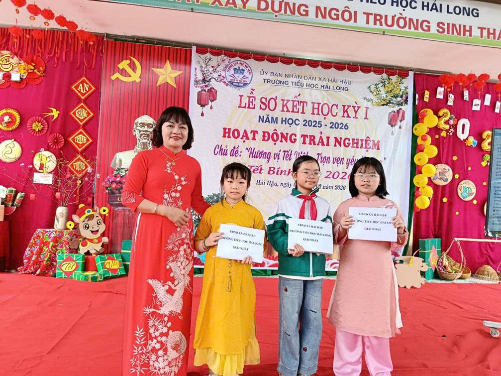 Lễ sơ kết học kì I năm học 2025 – 2026 cùng hoạt động trải nghiệm “Hương vị Tết Việt – Trọn vẹn yêu thương” đã khép lại trong không khí vui tươi, đầm ấm, để lại nhiều dấu ấn đẹp. Đây không chỉ là dịp tổng kết, đánh giá mà còn là bước đệm quan trọng để thầy và trò Trường Tiểu họcHải Long tiếp tục nỗ lực, sáng tạo, quyết tâm hoàn thành xuất sắc nhiệm vụ trong học kì II.
