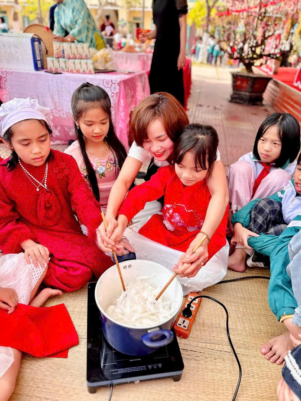 Điểm nhấn đặc biệt của chương trình là Hoạt động trải nghiệm với chủ đề “Hương vị Tết Việt – Trọn vẹn yêu thương”. Hoạt động mang đến cho các em học sinh một không gian Tết xưa gần gũi, sinh động và giàu ý nghĩa giáo dục.