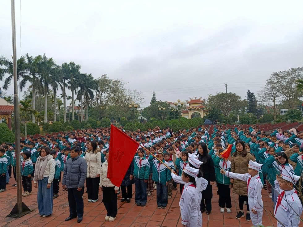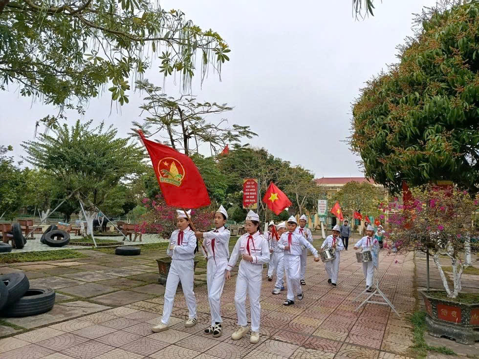 Buổi lễ diễn ra trong không khí trang nghiêm, thành kính; mở đầu là nghi lễ chào cờ theo nghi thức Đội TNTP Hồ Chí Minh, thể hiện tinh thần yêu nước, niềm tự hào dân tộc và ý thức trách nhiệm của thế hệ măng non đối với Tổ quốc.