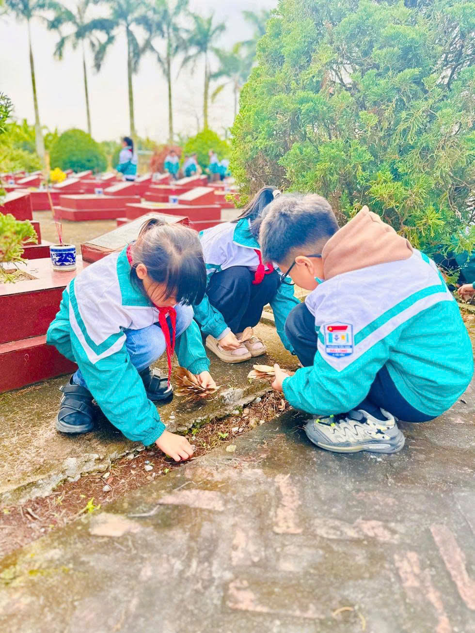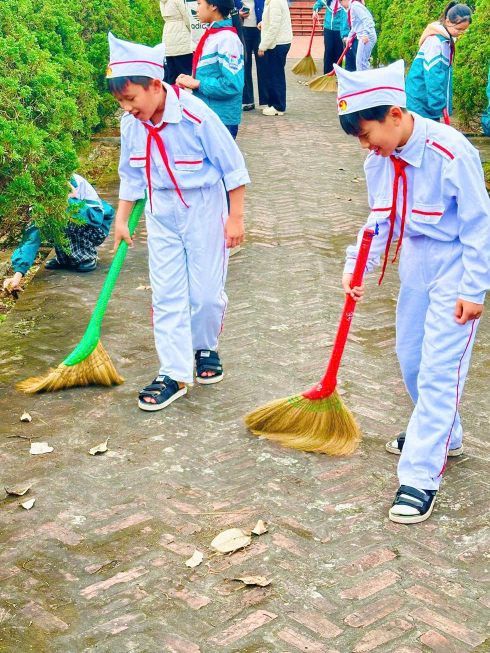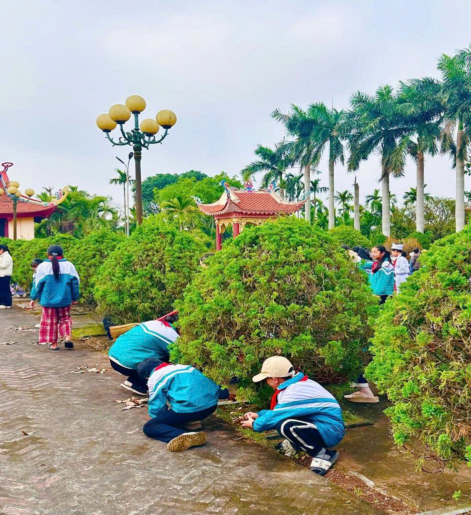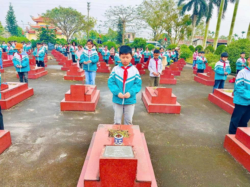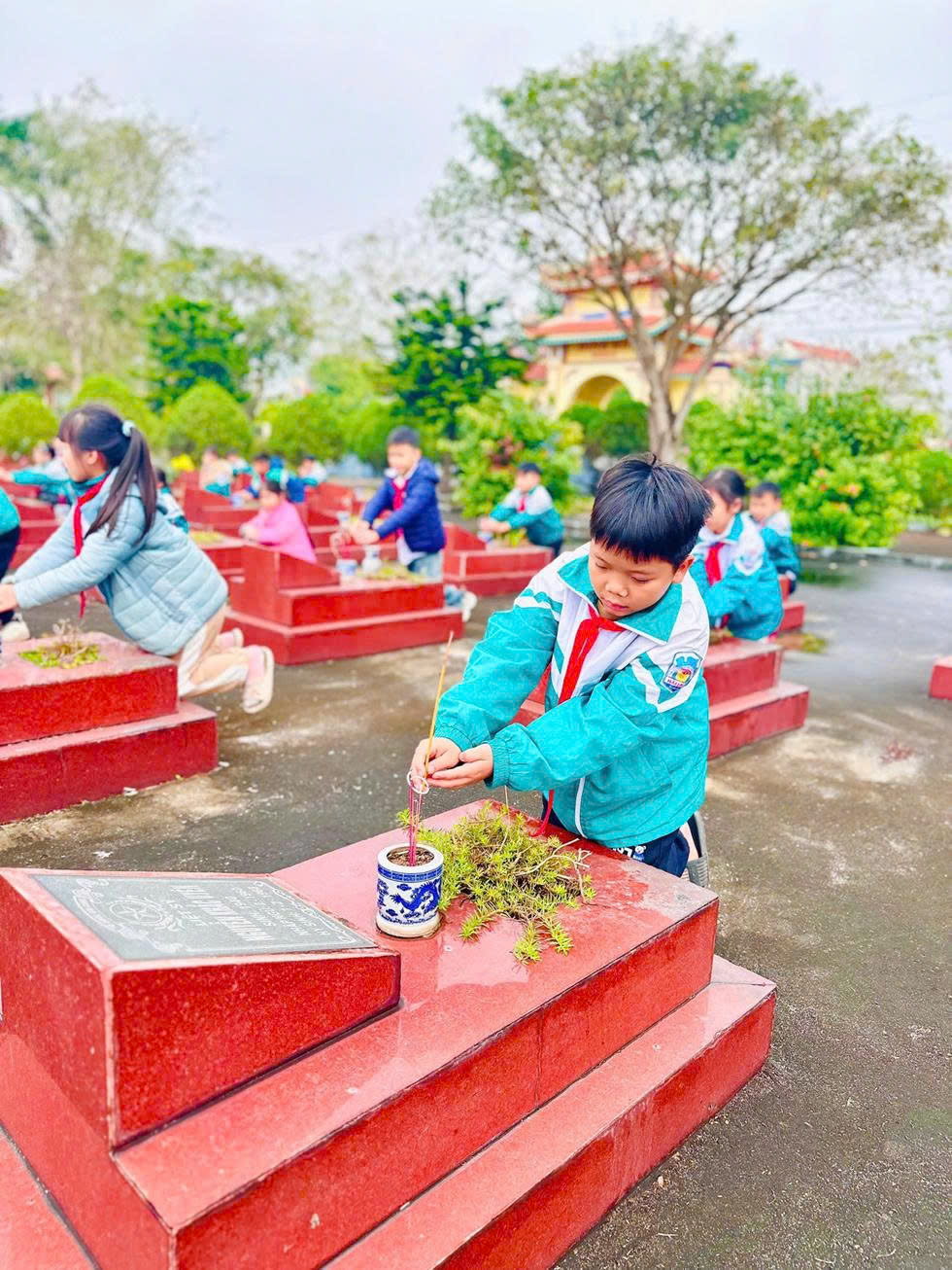Sau lễ tưởng niệm, các thầy giáo, cô giáo cùng các em học sinh tham gia lao động vệ sinh, chỉnh trang khuôn viên Nghĩa trang Liệt sĩ, góp phần giữ gìn cảnh quan sạch đẹp, thể hiện tinh thần trách nhiệm và đạo lý “Uống nước nhớ nguồn” của thế hệ trẻ và thắp hương tại từng phần mộ Liệt sĩ, thể hiện tấm lòng thành kính, sự biết ơn sâu sắc của thế hệ hôm nay đối với những người đã ngã xuống vì Tổ quốc.