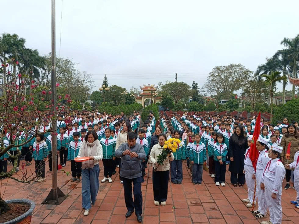 Trong không gian linh thiêng của Nghĩa trang Liệt sĩ, đại diện Ban Giám hiệu, các thầy cô giáo và học sinh đã thành kính dâng hoa, dâng hương, bày tỏ lòng biết ơn sâu sắc đối với các Anh hùng Liệt sĩ, các Bà mẹ Việt Nam Anh hùng – những người đã anh dũng hy sinh vì độc lập, tự do của dân tộc và hạnh phúc của Nhân dân. Các em học sinh tham gia buổi lễ với thái độ nghiêm túc, trật tự, thể hiện sự trưởng thành trong nhận thức và hành động.
