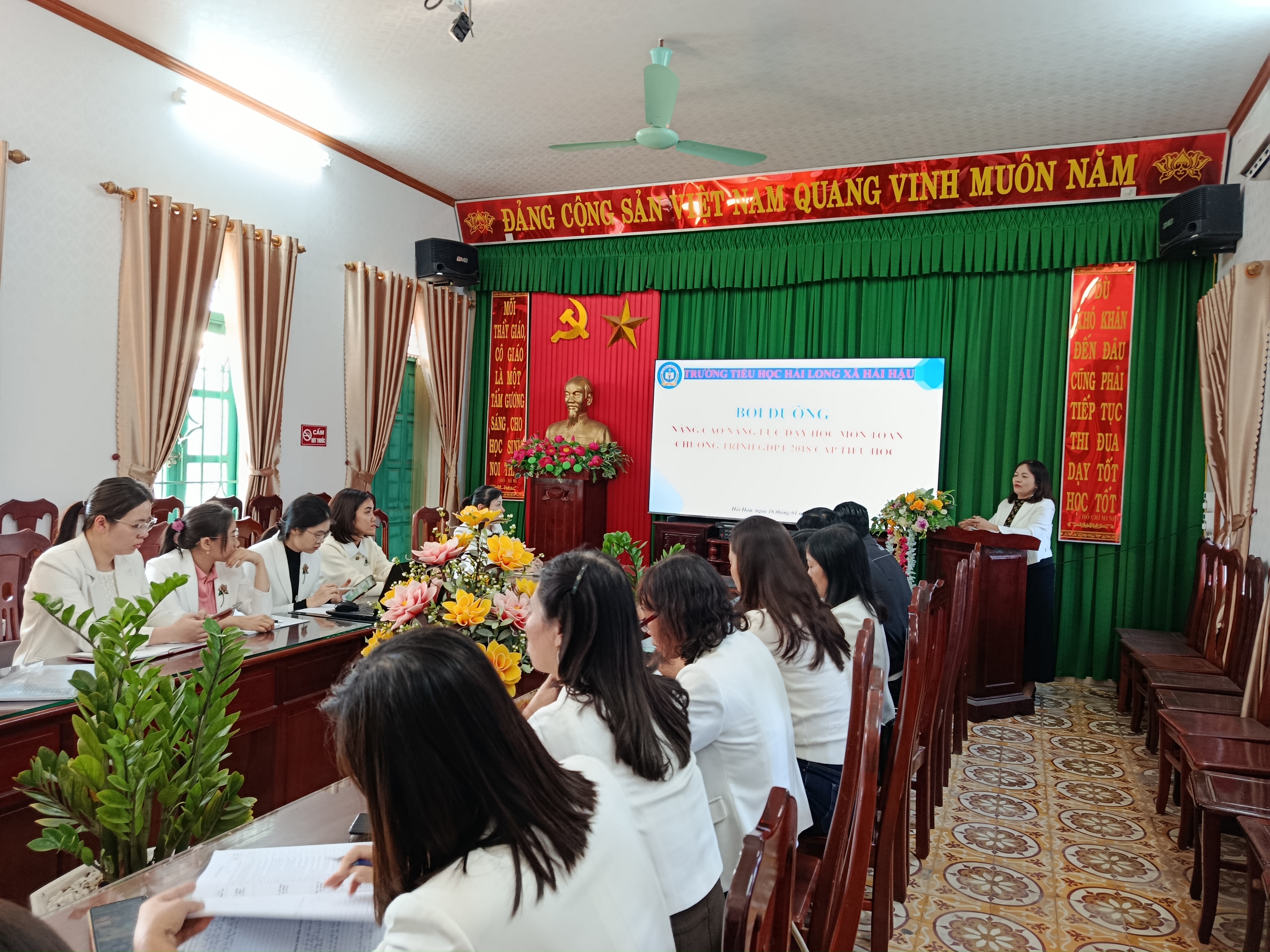 Thực hiện kế hoạch năm học và nhằm không ngừng nâng cao chất lượng hoạt động chuyên môn, đẩy mạnh đổi mới phương pháp dạy học trong nhà trường, ngày 16/01/2026, Trường Tiểu học Hải Long đã tổ chức buổi Sinh hoạt chuyên môn (SHCM) với hai nội dung trọng tâm: Chuyên đề nâng cao năng lực dạy học môn Toán và Bồi dưỡng công tác truyền thông trong nhà trường. Buổi sinh hoạt có sự tham gia đầy đủ của Ban Giám hiệu cùng toàn thể cán bộ, giáo viên nhà trường.